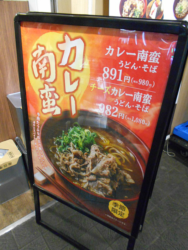 今日は通院の待ちが長引いたので軽めに食べてきたんですが、中途半端に食べたせいか小腹が空きまして。 イモという気分でもなかったので蕎麦でもサッと食べるかと思いつき、東西自由通路の一のやに来ています。 丁度、今はカレー南蛮をやってるみたいなので、それにしてみようかと。チーズも追加出来るらしいけど、 どんなカレーか良く判らないので普通のやつで行ってみよう。