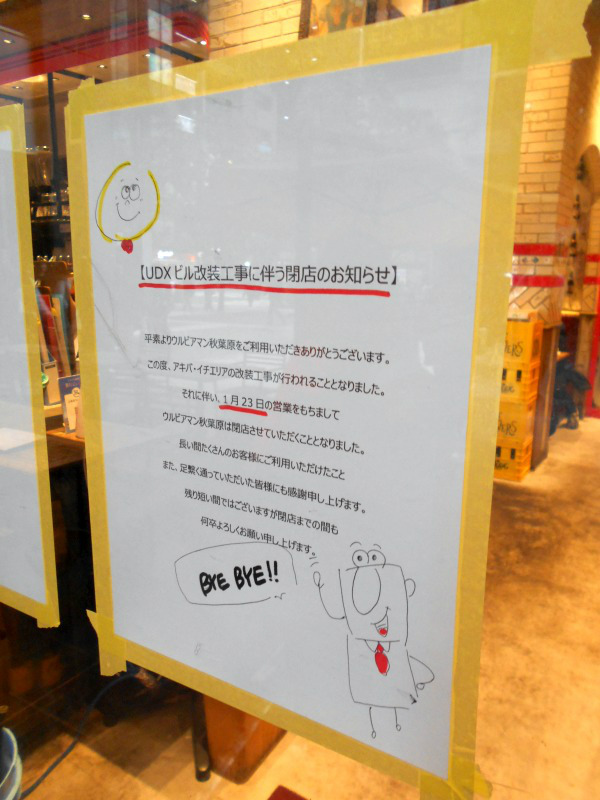 アキバイチのウルビアマンは改装に合わせて閉店に