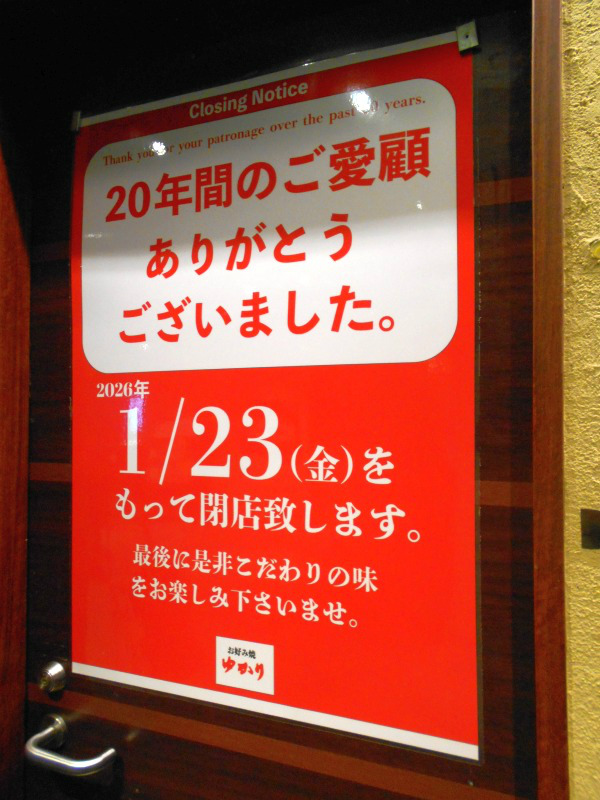 アキバイチのお好み焼 ゆかりも来年1/23で閉店に